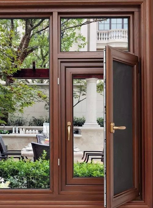 鋁包木窗是在實木的基礎上,用鋁合金型材與木材通過機械方法連接而成的型材,通過特殊角連接組成的新型窗。這種門窗具有雙重裝飾效果,從室內(nèi)看是溫馨高雅的木窗,從室外看卻又是高貴豪華的鋁合金窗。這樣既能滿足建筑物內(nèi)外側(cè)封門窗材料的不同要求,保留純木門窗的特性和功能